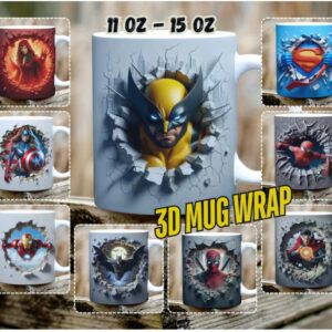 Envoltura de taza de personaje de peliculas de superhéroes con efecto 3D