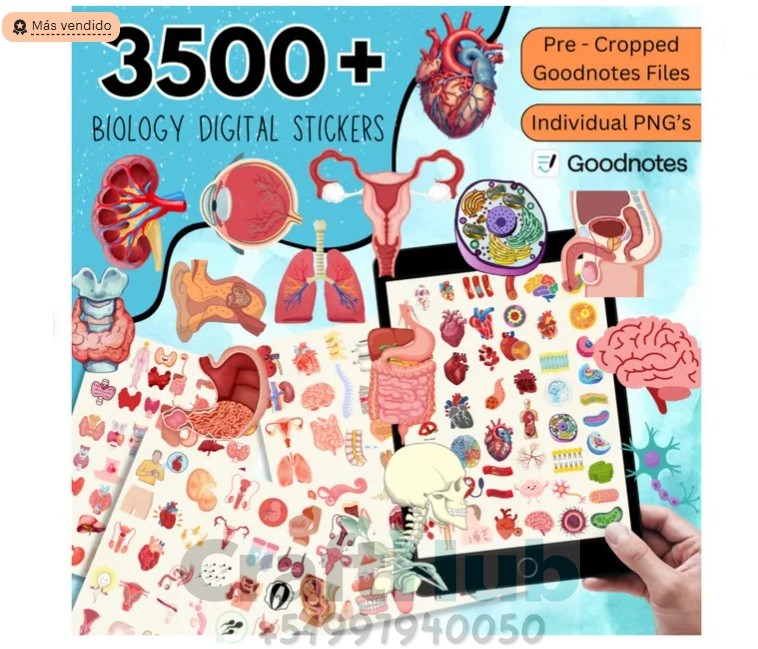 ¡Dale un toque educativo y visualmente impactante a tus apuntes, proyectos y presentaciones con este increíble pack de 3500+ pegatinas digitales de biología! 🌟 Perfecto para estudiantes, profesores, médicos y amantes de la ciencia.